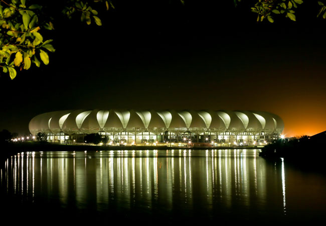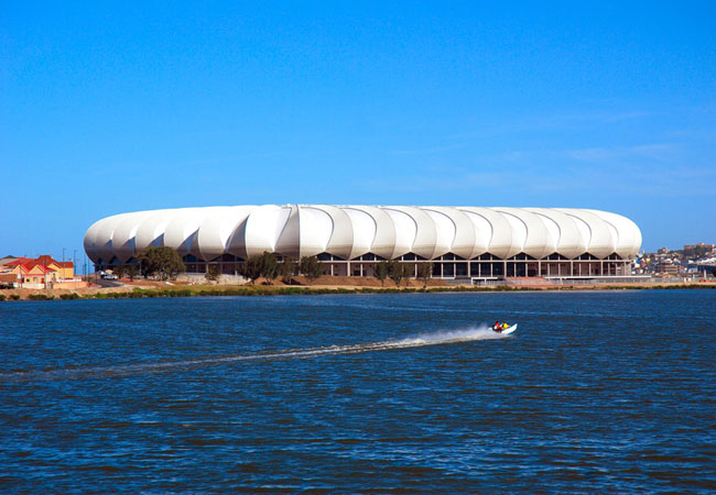 This stadium was designed to resemble a massive flower (most folk identify it as a protea), with petal-like panels making up the open roof. Located right next to the North End Lake, just a short distance away from the ocean, this stadium has made a remarkable difference to the look and feel of Port Elizabeth's industrial area. This unique locale of lake and ocean also sets this stadium apart from others all over the world.