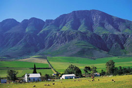 Swellendam is the largest youngberry growing area in the world, due mainly to the unique microclimate of the Hermitage valley just a few kilometres outside of Swellendam, and includes farms such as Wildebraam Liqueur farm, which offers liqueur tasting and a cellar tour. The foot of the Langeberg is home to a number of fruit and dairy farms whilst the dryer and flatter region, further in from the mountain, is predominantly sheep and grain farming.