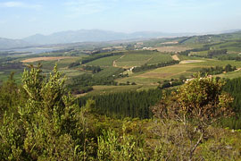 Grabouw is the epicentre of the apple-producing part of the region that also produces plums, pears and nectarines and lies on the banks of the same river that meanders through the Viljoen's Pass. The pass looks down into the pretty valley that lies between the Hottentots Holland mountain range and the Groenland Mountains. It is a tar pass that takes one through some pretty spectacular scenery and is worth driving particularly as it is not very busy.