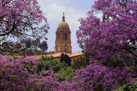 But Pretoria is not just about government. It is also a place of culture with a series of theatres, museums and monuments – Church Square, Union Buildings, Melrose House and the Voortrekker Monument to name but a few. Roses grow beautifully in the city's climate and it was known early on as the ‘city of roses'. Add to this some 50 000 Jacarandas that line the streets and one can understand how it became known as the ‘jacaranda city' or ‘jakarandastad' in Afrikaans.