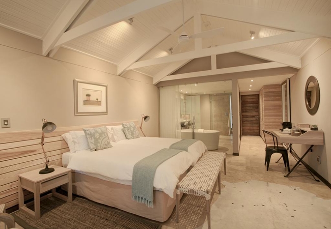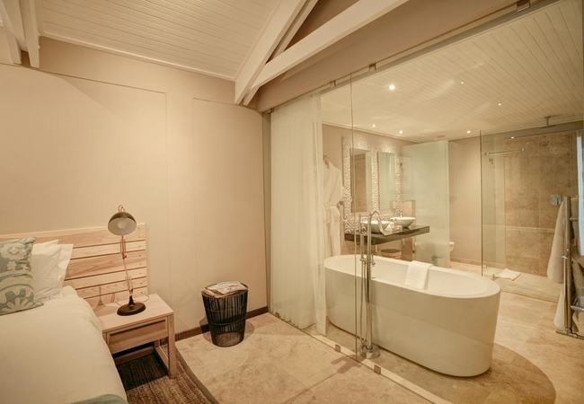 King / Twin bedded en-suite room with full bathroom. Overlook garden. Spacious en-suite rooms with balconies offering panoramic views of the surrounding mountains and ocean. Individually and tastefully decorated featuring South African art and décor. Bathrooms are spacious with Basins, Baths and separate showers complimented with luxury amenities.