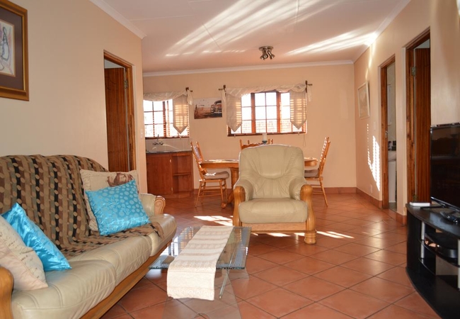 Unit 1 is a two bedroom ground floor self-catering apartment with a double bed, a 2 three-quarter bed and a sleeper-couch. It is completely furnished with a full kitchen, a dining room, lounge/TV room, flatscreen TV, DSTV, full bathroom with bath and shower.