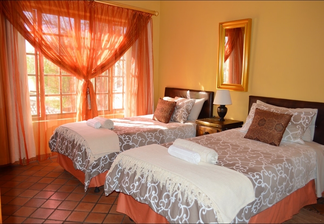 Unit 3 is a two bedroom self-catering apartment with a balcony. The rooms are furnished with two three-quarter beds and twin beds. It is completely furnished with a full kitchen, a dining room, lounge / TV room and a full bathroom with a bath and a shower.