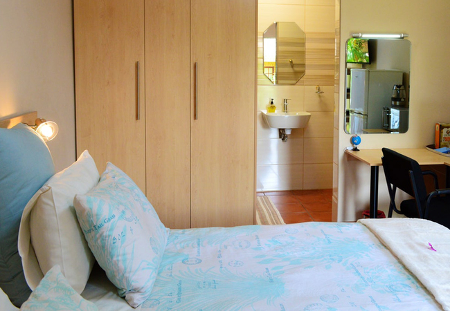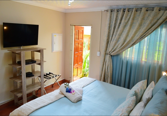 Unit 5 is a 1 bedroom ground floor studio for 2 guests with it's own private entrance. It is completely furnished with a kitchenette with a coffee nook, microwave, full size fridge, utensils, flat-screen TV, Dstv Premier bouquet and en-suite bathroom.