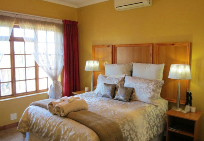 This is a three bedroom self-catering apartment with a balcony, with a queen size bed, a double bed and a three-quarter bed. It is completely furnished with basic kitchen facilities, lounge / TV room, flat-screen TV, DSTV, full bathroom with bath and shower.
