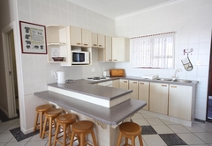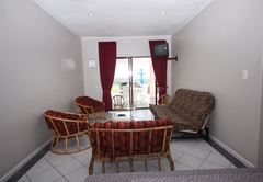 Units 1-6 are ground floor units. The units sleep up to five people each and consists of two bedrooms and two bathrooms. Double bed in main bedroom and bunk beds or twin beds in second bedroom and a sleeper couch in the lounge. All linen is provided except for beach towels. Each unit has a private patio with a Weber braai to enjoy while watching the sea with sundowners. All units come with fully-equipped open plan kitchens, are serviced daily and have colour televisions with M-Net (DStv available on request). There are laundromats on the premises, as well as undercover parking with trailer bays.