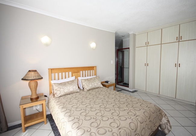 2nd Floor Unit. Penthouse can accommodate 6 people but no under 16s allowed. Two double beds in main and second bedroom. Two ž beds in the third bedroom. All linen is provided except for beach towels. Each unit has a private patio with a Weber braai to enjoy while watching the sea with sundowners. All units come with fully-equipped open plan kitchens, are serviced daily and have colour televisions with M-Net (DStv available on request) There are laundromats on the premises, as well as undercover parking with trailer bays.