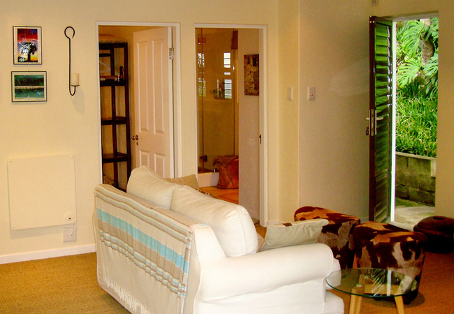 The cottage is exceptionally private with its own entrance, covered veranda with exceptional views, TV with local channels, functional kitchen, braai (BBQ) and parking. It offers 2 bedrooms sharing a double shower room. Accommodation options include a double room and a twin room with two singles or a double room and a king room. There is also a travel cot available upon request as well as a high chair.