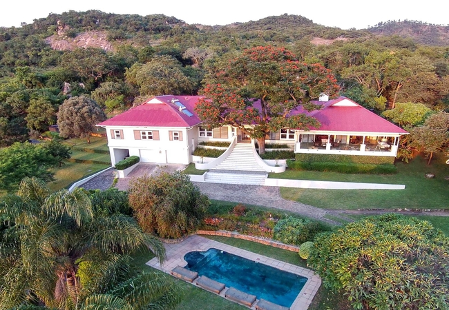 Set in 60 hectares of pristine bush, within the Jock of the Bushveld Conservancy, umSisi House is strategically located in the Peebles Valley between the town of White River and the Numbi Gate entrance to the southern Kruger Park (15 minutes away). The house only caters for private groups (between four and ten people) on either a self catering, dinner, bed and breakfast basis or a full board (all inclusive) basis. It is particularly suitable for those looking for luxury accommodation near the Kruger Park. All meals are planned with guests in advance to ensure that the dining experience is a daily highlight. umSisi House welcomes children of all ages. TGCSA 5-Star Country House. This is a destination offering Kruger Park accommodation at its best while truly embracing the essence of South Africa: its people, its wild places and its wildlife. umSisi House has three en-suite bedrooms (master suite with dressing room) in the farmhouse. Luxuriously appointed bathrooms all with large showers, deep baths and wonderful views of the surrounding mountains. Bespoke menus chosen by the guests themselves, delicious home-cooked food prepared with love and local seasonal produce. An inviting swimming pool heated by the sun, surrounded by sun loungers and a nice big umbrella for those seeking shade. A vast covered veranda with dining area and charcoal-fired oven / barbecue, comfortable plantation furniture and a day bed for those lazy afternoons. Colonial paddle fans in all rooms and on the veranda to fight off the African heat. A roaring fire in the sitting room and heating throughout for those chilly winter nights when the skies are icy blue. Wifi internet available throughout the house. A wide selection of books and other reading material in the Library (which doubles as the TV Room) including a collection of natural science reference books covering all of the region's wildlife as well as guide books and maps of the surrounding area. These are available for your use when exploring the Kruger National Park. A TV Room for those rainy days or times when guests feel the need to catch up with the outside world offering satellite TV with an HD decoder / recorder, DVD player and a large collection of movies. A selection of games and puzzles. Speakers in all the entertainment areas allowing you to connect your iPod to our system. Complete wheel-chair access to ensure that everybody who wants to experience umSisi House can. A wonderful team of staff to ensure that your stay is hassle-free and packed with memories to take home