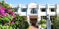 Walking through the foyer you get a glimpse of the courtyard, lush green lawn and swimming pool area where guests ...