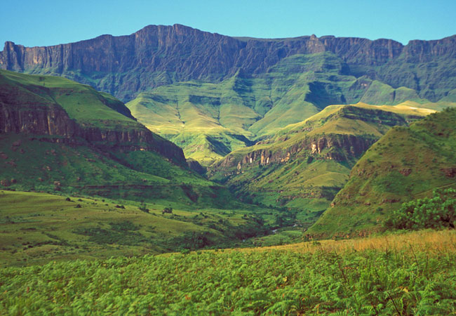 The Rugged Glen Nature Reserve, which was originally a farm of the same name, lies in the upper reaches of the Drakensberg Ukhahlamba Park, often described as a '200-kilometre-long wonderland'. It is a place quite literally of grandeur - no other adjective will quite evoke the incredible beauty, peace, quiet and majesty of the 'barrier of spiers' that is this 150 million-year-old basalt mountain range.