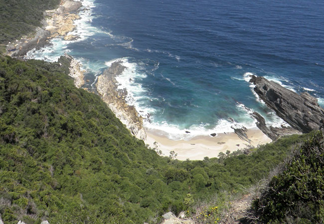 The Tsitsikamma's spectacular scenery includes the Indian Ocean breakers, pounding rocky shores beneath 180 m high cliffs, ever-green forests and fynbos (proteas and heath) rolling down to the sea in a lush carpet where ancient rivers have carved their path to the ocean through rocky ravines. All this conspires to attract large numbers of international and local tourist to the Park.