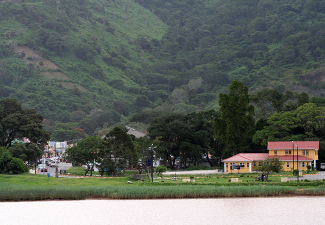 The setting of Port St Johns is possibly the most dramatic in the country and the drive from Umtata to Port St Johns is one of the best journeys on the Wild Coast. The Umzimvubu River cuts a huge gorge right to the sea where it then squeezes between the river's edge and the red stone cliffs of the gorge. Twin mountains, the Thesiger and Sullivan, lie on either side of the river mouth like bastions and are regarded as the gates of Port St Johns, which, despite this splendour, is largely a magnet for hippies, eccentrics and backpackers. Three good beaches, excellent fishing and a rather chequered history, involving the growing of cannabis instead of tobacco, might account for this.
