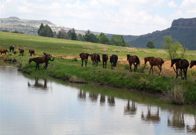 Water sports and angling are enjoyed on the Meulspruit Dam, which is surrounded by a nature reserve. The dam is the starting and finishing point for the 23-km Imparani Hiking Trail. Ficksburg is a gateway to the Mountain Kingdom of Lesotho. One of the most exciting ways of crossing the rugged Maluti Mountain range into Lesotho is on the back of a Basotho pony. The traditional means of transport among the Sotho people, Basotho ponies are famed for their sure-footedness in mountainous terrain..