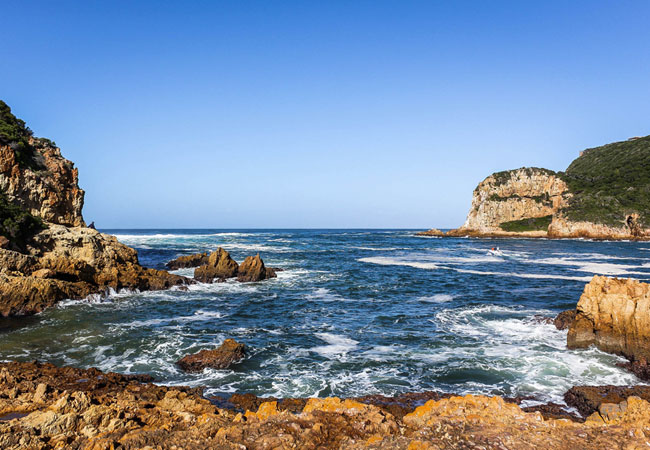 A visit to Knysna would be incomplete without a trip to the heads - a striking geological feature made up of a pair of huge, brightly coloured cliffs lying at the mouth of the lagoon, flanking a channel of potentially treacherous water that flows into Knysna's lagoon. The eastern head houses a lookout with spectacular views of the lagoon, Leisure Isle and Knysna whilst the western head is a privately owned nature reserve called Featherbed Nature Reserve. Visitors can get to the reserve via ferry.