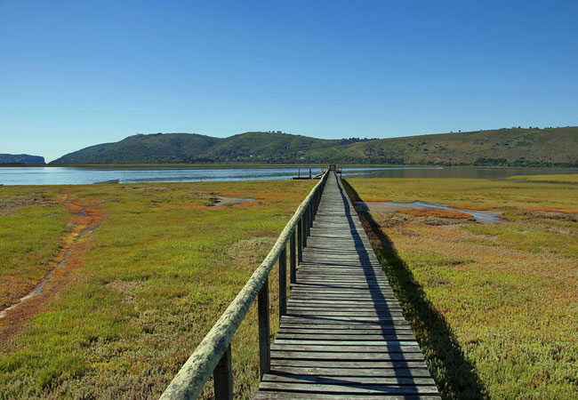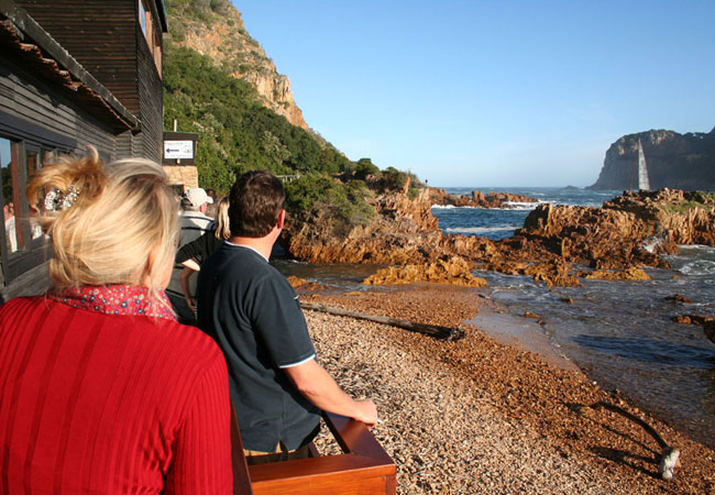 The Featherbed Nature Reserve provides scenic views of Knysna and The Heads from the opposite shore of the Knysna Lagoon. Ferries depart daily. On arrival at the reserve, guests are taken in 4-wheel drive vehicles to the top of the Western Head. A foot trail leads through 2 km of coastal forest and along the water's edge back to the Featherbed tavern, where a delicious lunch of grilled, fresh line fish can be enjoyed.