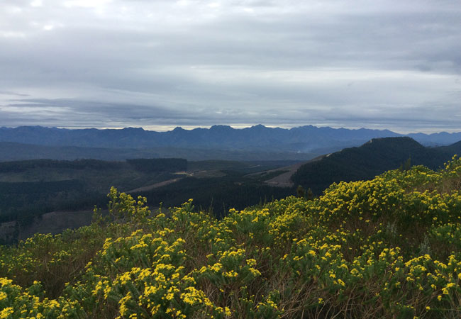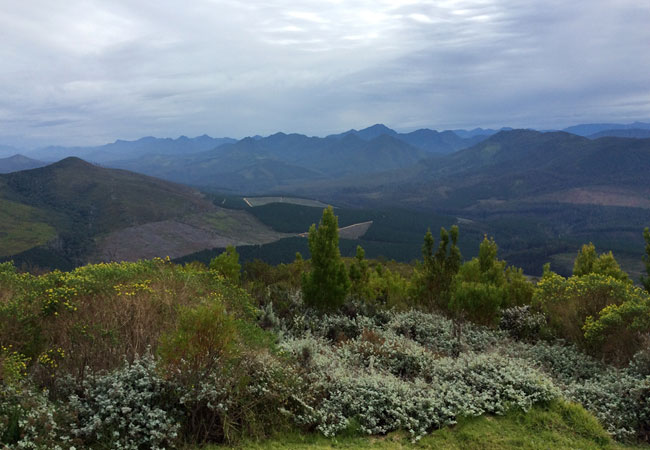 The gravel detour up to Spitzkop is bumpy and not in good shape, but you don't need a 4X4 to navigate the journey, and the views from the top are worth every bump or dump en route – out over Knysna Heads, across to Plettenberg Bay and the Outeniqua Mountains.