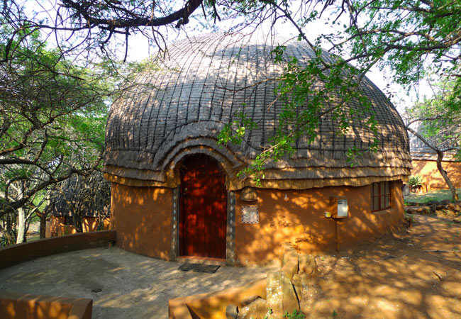 mFulaWozi has an earthy character with panoramic view of the water and the Wilderness. The cylindrical flat stone roofs and clay-coloured façade ...