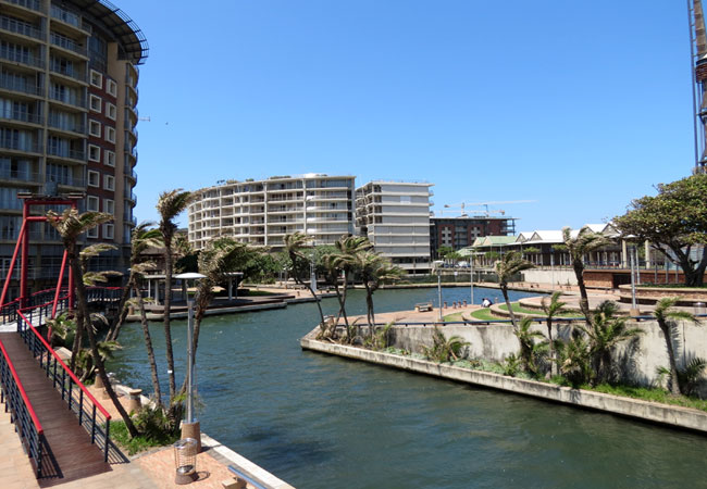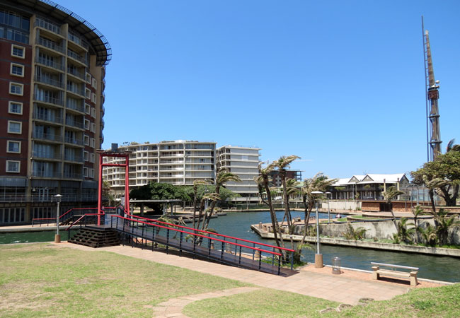 The development at the New Point Waterfront is modern, angular and elegant. Launched in 2003, it looks in many ways as if it could feature on the same page as London's Docklands, although smaller, and the little canal that weaves amidst the already ten completed developments add a distinct touch of Venice particularly since gondolas also glide up and down the ribbon of water. Hard to believe that this area had become a largely abandoned and vacant part of Durban's harbour, prey to derelection and unsavoury elements of society.