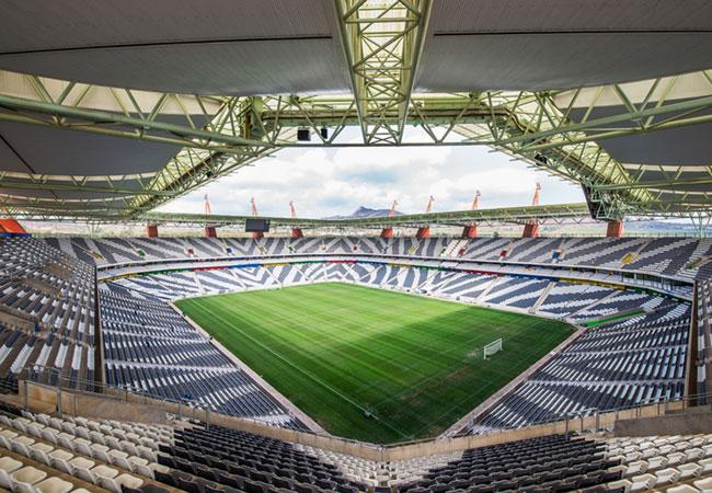 The Mbombela Stadium has a seating capacity of almost 41 000. Its design has close ties to its proximity to the world-renowned Kruger National Park and the wildlife to which it is home. The chairs are black and white, and positioned to resemble the stripes on a zebra. The 18 roof supporting structures are designed to look like tall giraffes, standing guard over the stadium and its spectators. These elements are striking, creating a really dramatic effect that is unabashedly African.