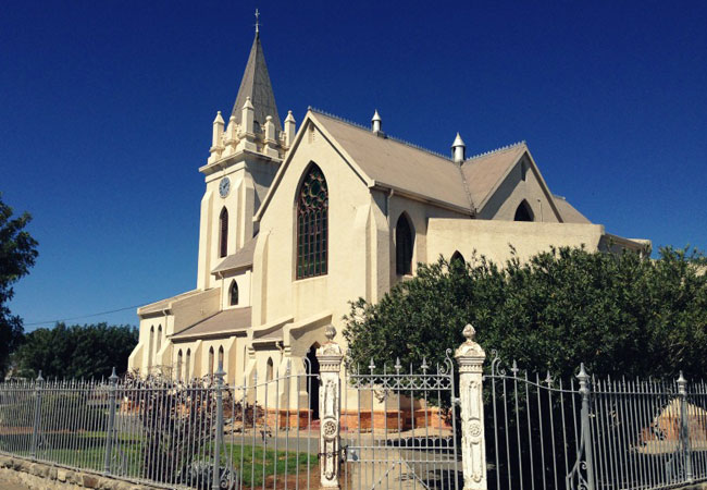 Britstown's history is barely in evidence, aside from the Dutch Reformed Church, built in 1877, and the town's museum in Raath Street, housed in what used to be the Holy Trinity Church. Today people visit for the chance to star gaze (enquire at the Transkaroo Country Lodge for excursions), to visit the local Khoisan rock art – in evidence on many of the local farms - and to hike the surrounds.
