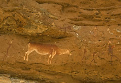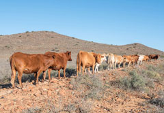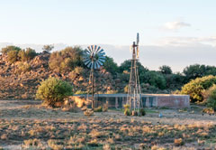 In the Upper Karoo region hardy succulents are complemented by grasses on which the region's cattle graze. Seemingly countless windpumps are indicative of the countless streams that flow between cracks and fissures that lie beneath the dry but fertile soil.