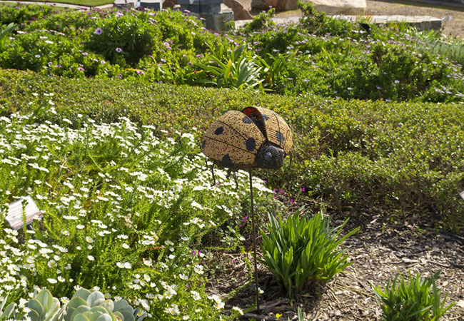 In and amongst the plants are displays, original art work created especially for the garden - including wire art, mosaics, ceramic statues and cut-out steel animals, and interpretive boards with illustrations and photographs. It is a feast for sore eyes.