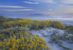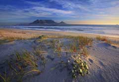 The Blaauwberg Coast is best known for its spectacular views of Table Mountain across Table Bay. The area encompasses 48 kilometres of sandy white beaches all with magnificent views of Devilīs Peak, Table Mountain and Lionīs Head as well as Robben Island, where Nelson Mandela and many other political prisoners spent part of their sentences.