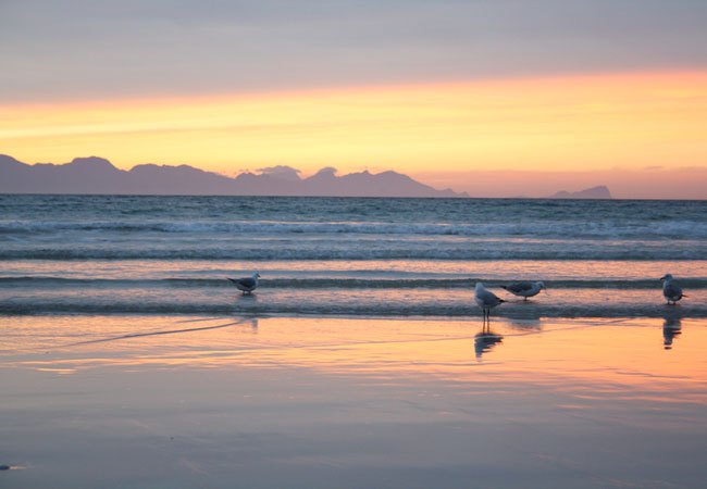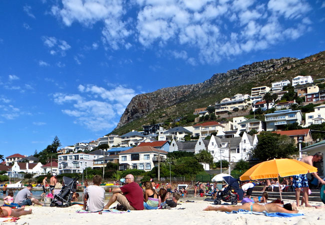 The beach tends to be the stamping ground of retired pensioners and families, and the bay lies in the shadow of the Kalkbaaiberg and Elsie's Peak headlands scattered with homes that offer wonderful views over the bay. Jager Walk is a favourite with Sunday strollers, and runs along one arm of the beach.