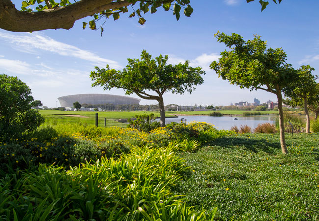 The Cape Town Stadium was designed and constructed using a number of green methods and initiatives. It is surrounded by an urban park, and is connected to the City Bowl and the V&A Waterfront by a series of well-planned roads and access points.