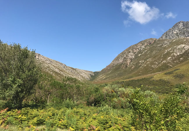 The biosphere also has three areas of relic indigenous forest; similar to the celebrated Knysna forests, and provides nature lovers with numerous hikes offering solitude and remarkably unspoilt stretches of wilderness with rugged kloofs, valleys and several mountain peaks. One might catch sight of the rare Strawberry Rain Frog, March Rose proteas, exotic birds - particularly in the wetlands of the lagoon - otters or even a leopard, if one is lucky.
