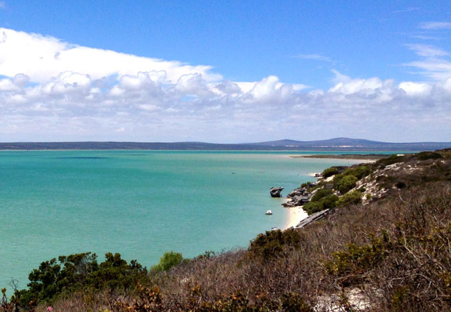 Langebaan is 16 km long and no wider than 3 km at any point. All that lies between it and the Atlantic Ocean is the Langebaan Peninsula, 15 km long and 2 km wide, peppered by large granite outcrops known as Vlaeberg and Konstabelkop.
