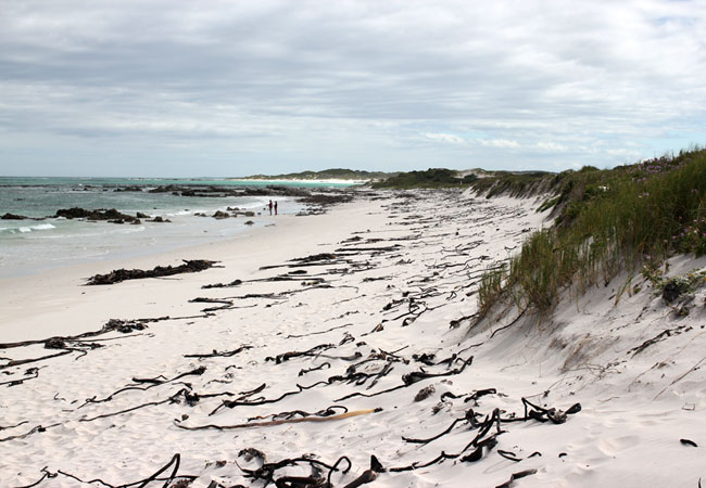 Not even 20 km from Gansbaai, Pearly Beach has been described as the longest undisturbed sand beach in the Western Cape, and even if this is a little grandiose a description, the beach nevertheless seems endless.