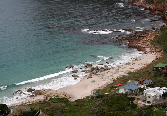 The secluded Smitswinkel Bay (also known as Smitswinkelbaai) lies hidden beneath the curve of the road that takes one to Cape Point Nature Reserve from Cape Town, a small bay reached only with some effort on foot, for it lies at the bottom of a steep cliff.