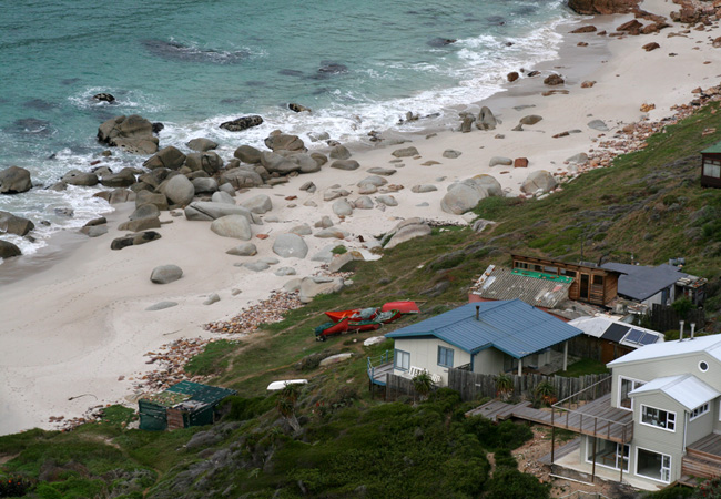 If you think it looks difficult to reach the bottom at least there is an obvious foot path from the viewpoint past the ramshackle beach houses, to the bay. Back in the old days, Smits (as it's known by those who live here) was reached only by boat.