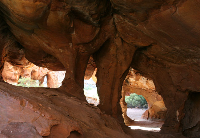 You find the caves in Matjiesriver Nature Reserve on the dirt road to Algeria that veers off the N7, 29 km from Citrusdal, to head up the Kriedouw and the Nieuwoudt passes, roughly 5 km down the road from the Algeria camp site, south east of the Clanwilliam Dam.