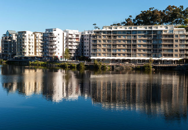 Then there's the Tyger Valley Waterfront, which to add to the confusion is based in Durbanville. This is a mixture of commercial and residential property on Carl Cronje Drive, built around an old quarry that no longer offends with its gaping ugliness, but instead includes a 4 ha man-made lake and a real storm water waterfall, which comes into its own during winter. The development is fast becoming a huge attraction, with modern buildings hugging the water canals, reminiscent of Cape Town's ‘real' waterfront.