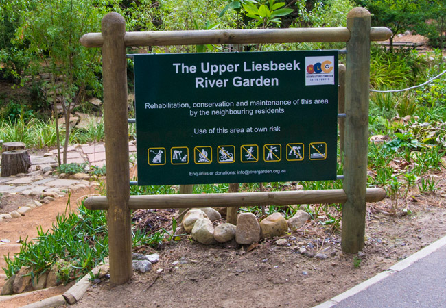 The Upper Liesbeek River Garden is in Bishopscourt Village, alongside the river on land regarded as ‘undeveloped public open space'. It is funded by the residents of Bishopscourt Village and Fernwood, the Nussbaum Foundation, corporate donors, and visitors. In other words, the locals have taken it upon themselves to beautify and maintain their local environment.