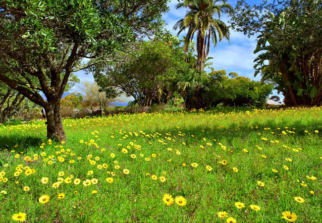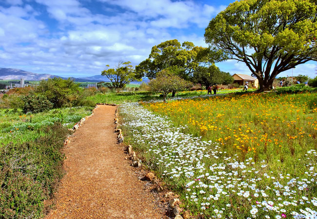 There is a little dam quite near the entrance, fields of daisies (depending on the time of year you are there), a rocky kloof filled with aloes that leads up into the mountains around Caledon, and a fairly extensive network of paths that take a while to walk. The central parts of the garden, in particular, are beautiful, and during spring (around September) rather inspiring through which to stroll.