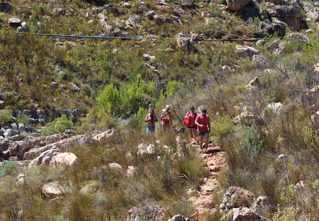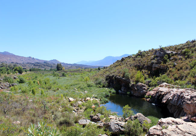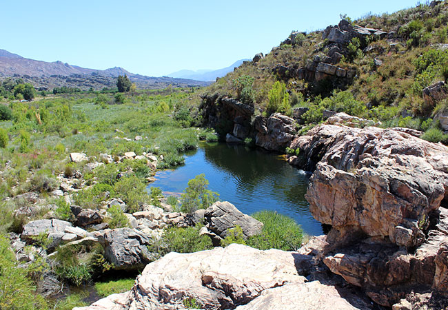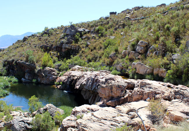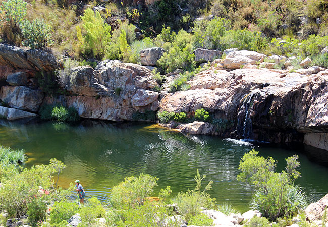 One of the best walks available in the reserve, which is actually situated on Grootfontein farm - a natural heritage site in its own right -, is the Leopard Trail. It isn't long for starters (those wanting to attempt more strenuous tasks will be keen to try the Dwars River Trail or Olifants Trail) but it does take one through a sequence of pools along the Ratel River and allows one to easily make a day of it.