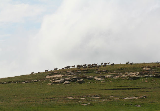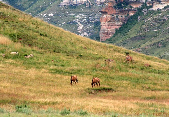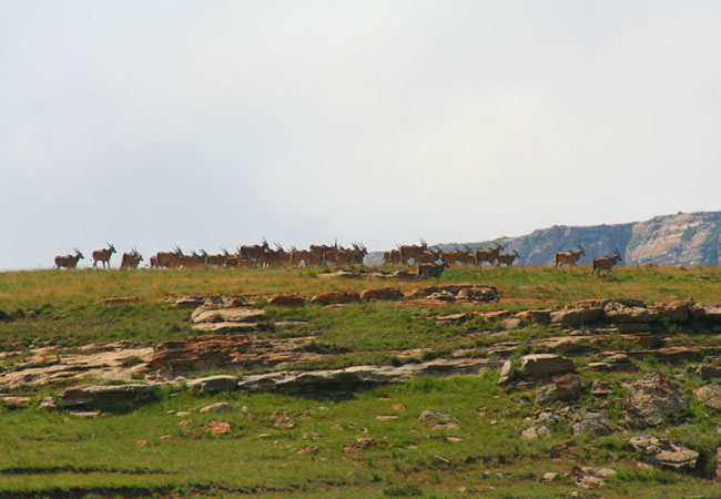 This 11 600 hectares of unique environment is true highland habitat, providing home to a variety of mammals including black wildebeest, eland, blesbok, oribi, springbok and Burchell's zebra - and birds, including the rare bearded vulture (lammergeier) and the equally rare bald ibis, which breed on the ledges in the sandstone cliffs.