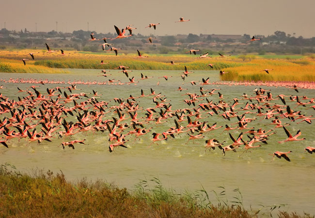 Kamfers Dam is particularly significant for its being one of the very few breeding sites for the Lesser Flamingo, which is smaller and paler than its contemporaries.