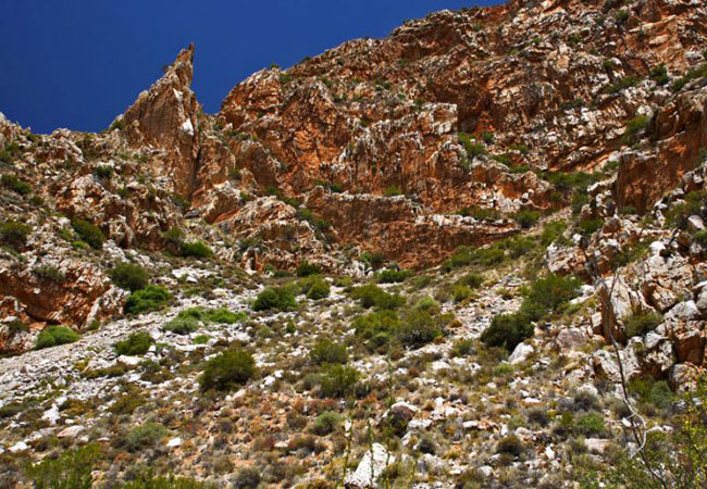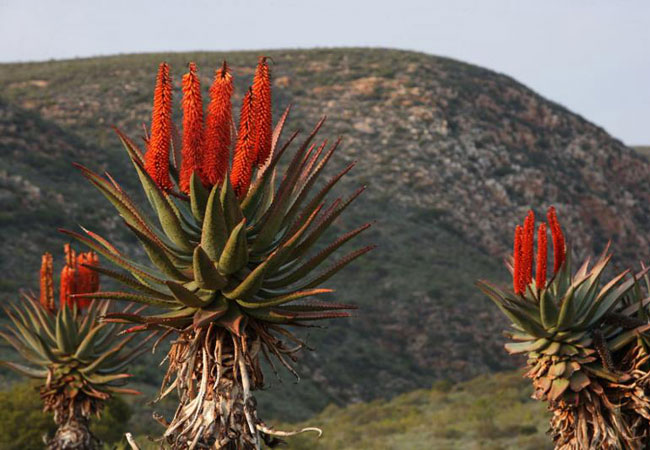 Streams and rivers flow in deep narrow kloofs, and the flora includes fynbos, waboomveld, arid fynbos, kloof shrubland and afro-montain forest. No fewer than 66 bird species make the reserve their home, including sugarbirds, and raptors like the black eagle.