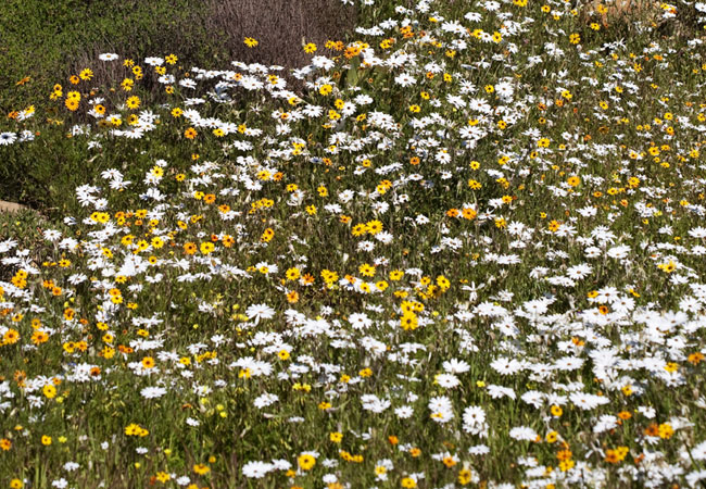 Ramskop Nature Reserve lies just next to Clanwilliam, with the Cederberg Mountains, fields of rooibos tea and orange groves as a backdrop. Its wild flower garden has no fewer than 350 different species of wild flower and it is one of several places in the area where during the flower season you're almost guaranteed of a carpet, particularly if you go between 11am and 3pm whilst the sun is at its highest and the flowers are open.
