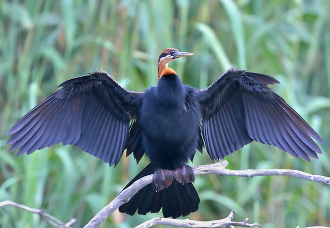 In addition many other species of bird can be seen including the Orange-throated Longclaw, the Little Egret, the Darter, the Reed Cormorant, the White-breasted Cormorant, the Goliath Heron, the African Finfoot and the Green-backed Heron.