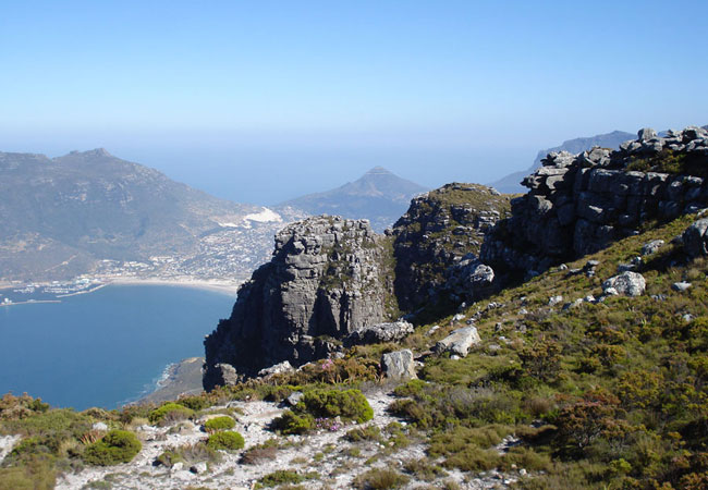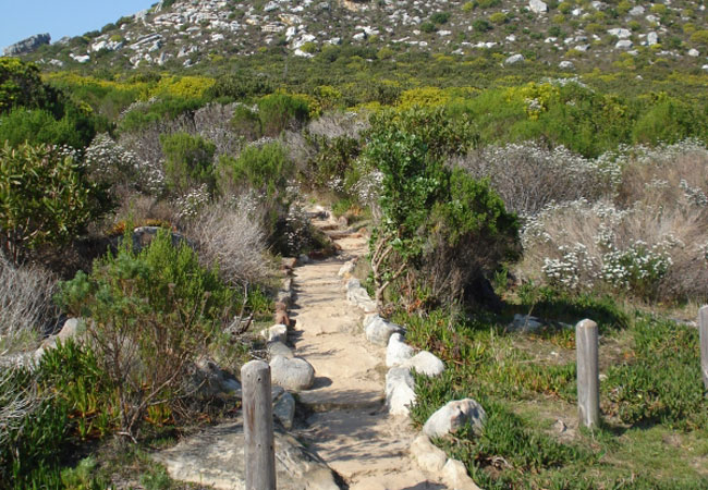 Following one of these hikes, a relatively short trail, will lead to a viewing point, where the view encompasses a panorama stretching from False Bay, all the way around to Cape Point, the famed meeting place of the Indian and Atlantic oceans.