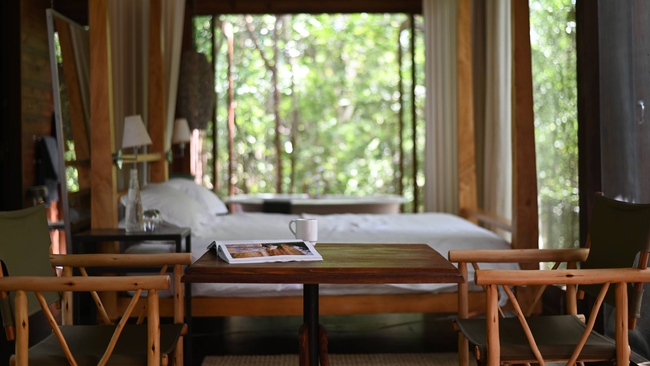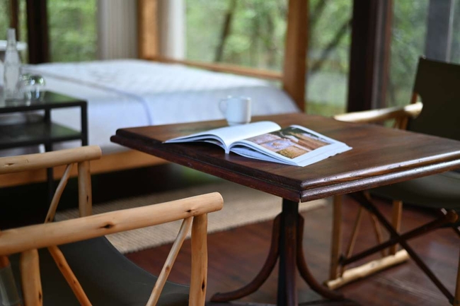 The Chalet sleeps two guests and has a double bed with floor-to-ceiling glass doors that open fully onto the plunge ...