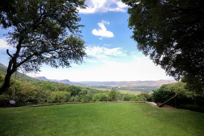 Enjoying lovely views of the mountain and Hartbeespoort Dam from the relaxation area, braai facilities are also ...