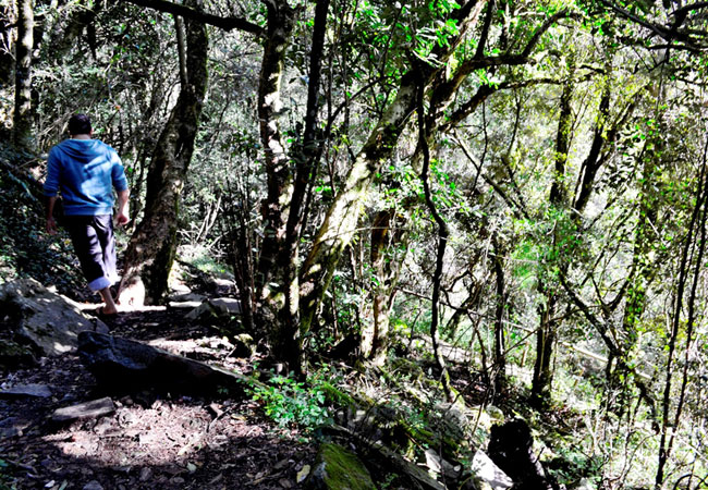 to Mnyameni hut (most isolated hut) the easiest and shortest day with an initial climb up Geju peak with incredible views, followed by a descent into Mnyameni gorge and Malan forest.