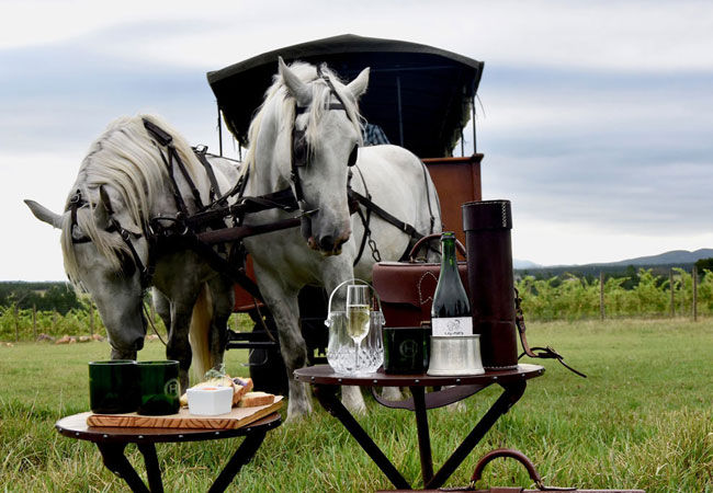 This is a slightly longer horse-drawn carriage tour and allows guests to visit two of the local wine farms. The tour includes: